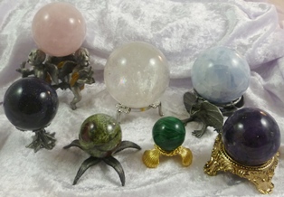 Spheres from small to very large in many different stones.