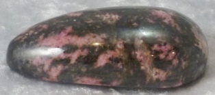 Rhodonite Curved Wand measuring 7.8cm x 3.7cm x 2.2cm thick.