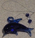 Royal Blue Glass Dolphin with 3 beads measuring 3.1cm x 2.3cm.