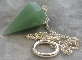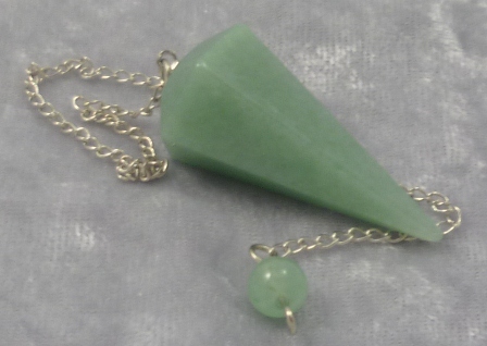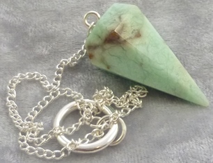Green Aventurine Faceted Pendulum measuring 3.4cm long x 1.8cm at the wide end with a 25cm chain.