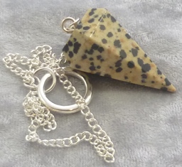 Dalmation Jasper Pendulum measuring 3.5cm long x 2cm with a 25cm long chain.