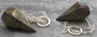 Dragon Stone Faceted Pendulum measuring 4.1cm long x 2.4cm at the wide end with a 25cm chain and ring.