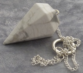 Howlite Faceted Pendulum measuring 4.1cm long x 2.4cm at the wide end with a 25cm chain plus ring.