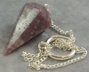 Lepidolite Faceted Pendulum measuring 3.5cm x 1.9cm at the wide end with a 25cm chain.
