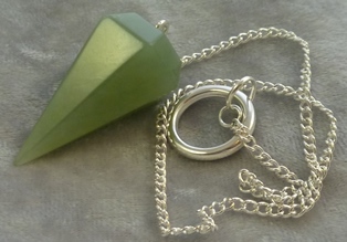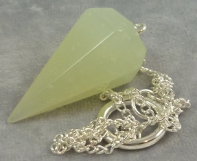 New Jade Faceted Pendulum measuring 3.5cm long x 1.8cm at the wide end with a 25cm chain.
