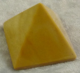Mookaite Pyramid mainly yellow with a bit of cream measuring 4cm x 4cm x 3.5cm high.