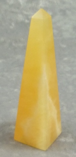 Orange Calcite Obelisk measuring 2.5cm x 2.5cm at the base x 9cm high.