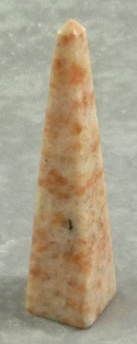Sunstone Obelisk measuring 2.4cm across the base x 9.5cm high.