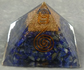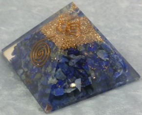 Lapis Lazuli Organite Pyramid measuring 7.6cm across the base x 5.4cm high.