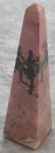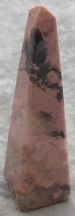 Rhodonite Obelisk measuring 2.5cm at the base .9mm at the top x 9.4cm high.