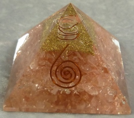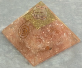 Rose Quartz Organite Pyramid measuring 8.2cm across the base x 5.8cm high.