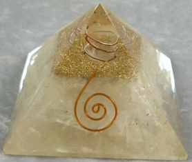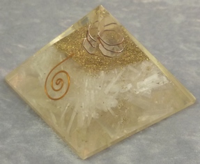 Selenite Organite Pyramid measuring 7.7cm across the base x 8.4cm high.